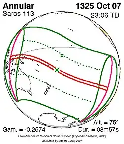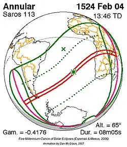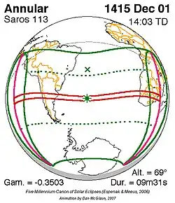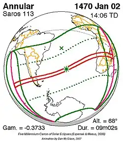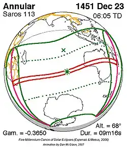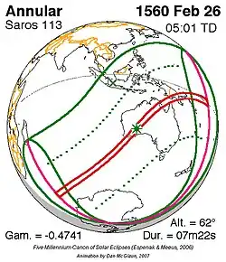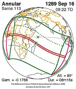 Langste ringvormige zonsverduistering 20 nov. 1397 9m 32s -