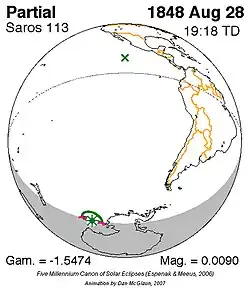 Kleinste gedeeltelijke zonsverduistering 28 aug. 1848 - 0,00899