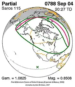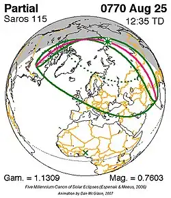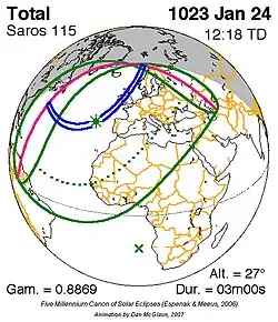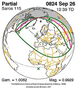 Grootste gedeeltelijke zonsverduistering 26 sep. 824 - 0,99287