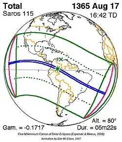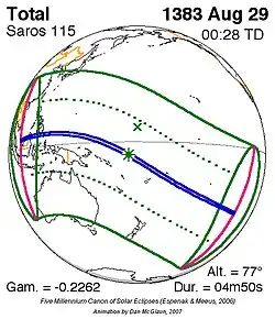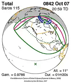 Kortste totale zonsverduistering 7 okt. 842 1m 30s -