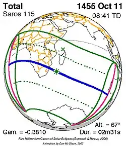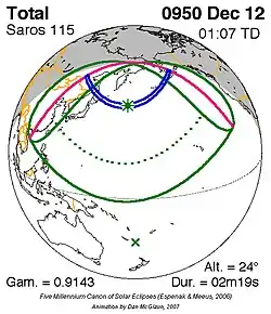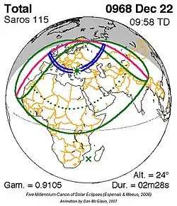 Saros 115 zonsverduisteringserie als bewegend beeld