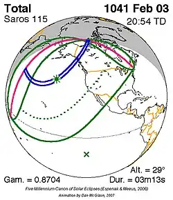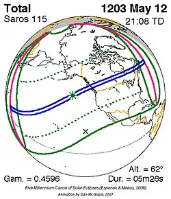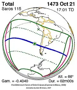 Langste hybride zonsverduistering 12 nov. 1509 1m 6s -
