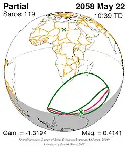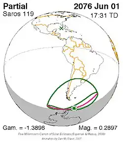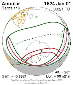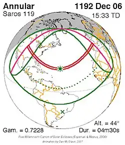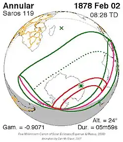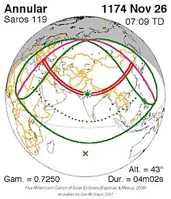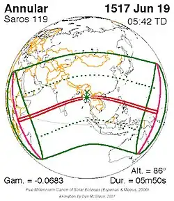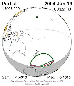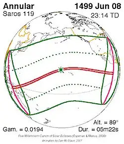 Saros 119 zonsverduisteringserie als bewegend beeld