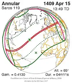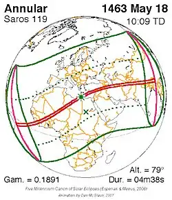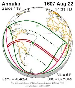 Langste ringvormige zonsverduistering 1 sep. 1625 7m 37s -