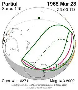 Grootste gedeeltelijke zonsverduistering 28 mrt. 1968 - 0,89901