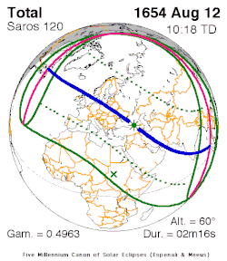 Kortste totale zonsverduistering 20 juni 1582 1m 59s -