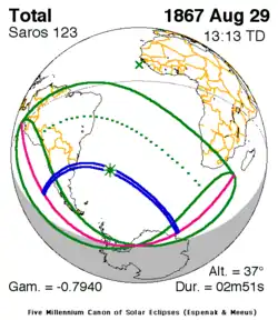 Saros 123 zonsverduisteringserie als bewegend beeld