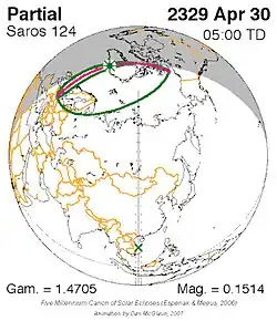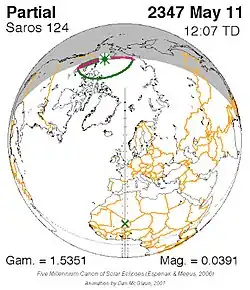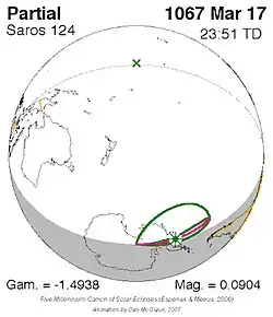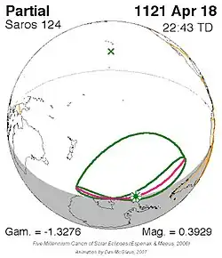 Kleinste gedeeltelijke zonsverduistering 6 mrt. 1049 - 0,01379