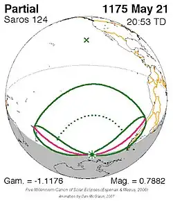 Grootste gedeeltelijke zonsverduistering 1 juni 1193 - 0,93315