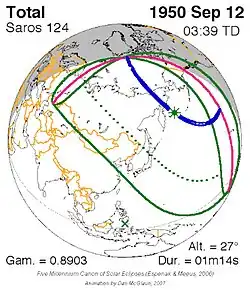 Kortste totale zonsverduistering 22 sep. 1968 0m 40s -
