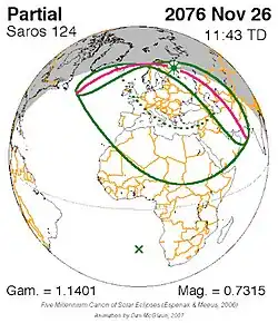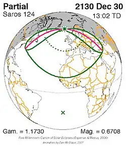 Saros 124 zonsverduisteringserie als bewegend beeld