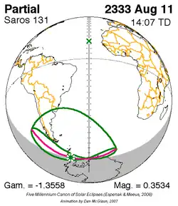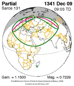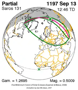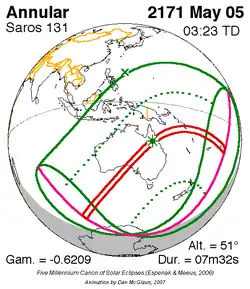 Saros 131 zonsverduisteringserie als bewegend beeld