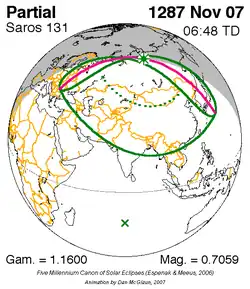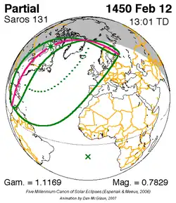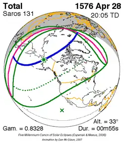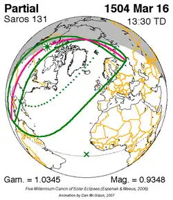 Grootste gedeeltelijke zonsverduistering 16 mrt. 1504 - 0,93484