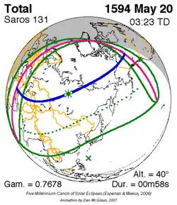 Kortste totale zonsverduistering 27 mrt. 1522 0m 26s -