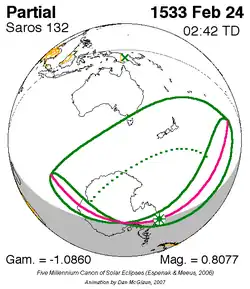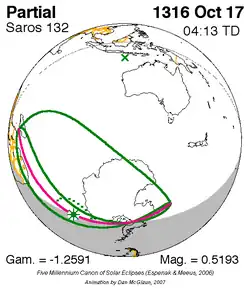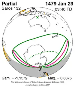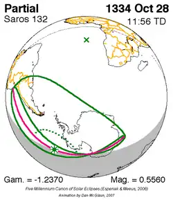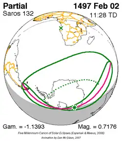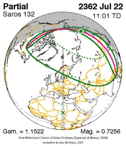 Saros 132 zonsverduisteringserie als bewegend beeld