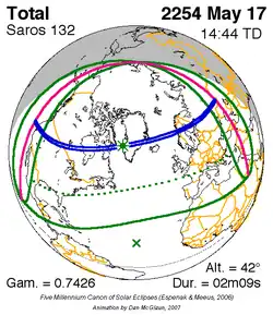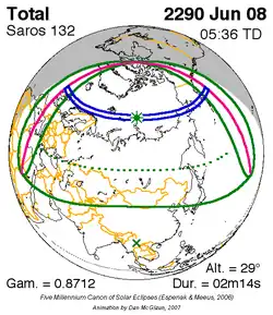 Langste totale zonsverduistering 8 juni 2290 2m 14s -