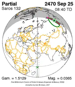 Kleinste gedeeltelijke zonsverduistering 25 sep. 2470 - 0,03653