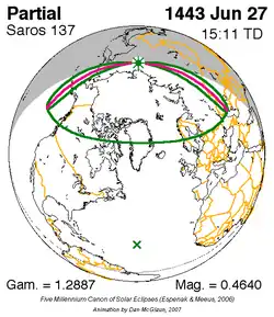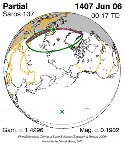 Kleinste gedeeltelijke zonsverduistering 25 mei 1389 - 0,05492