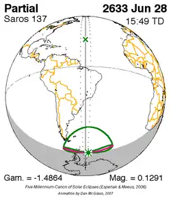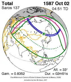 Saros 137 zonsverduisteringserie als bewegend beeld