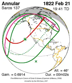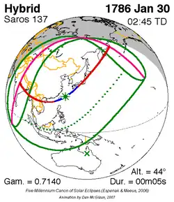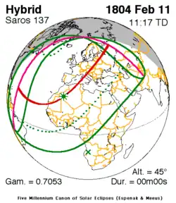 Kortste hybride zonsverduistering 11 feb. 1804 0m 0s -