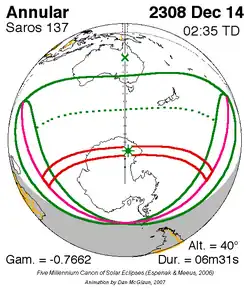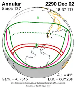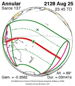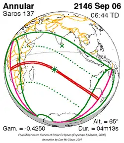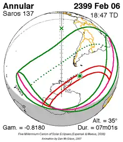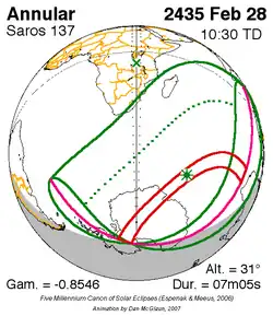 Langste ringvormige zonsverduistering 28 feb. 2435 7m 5s -