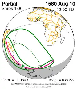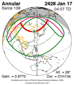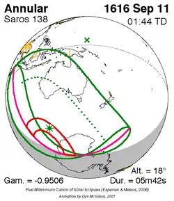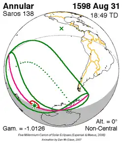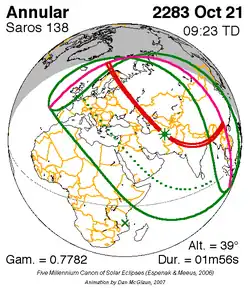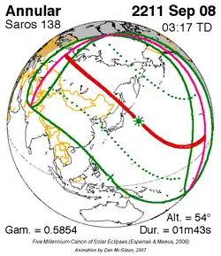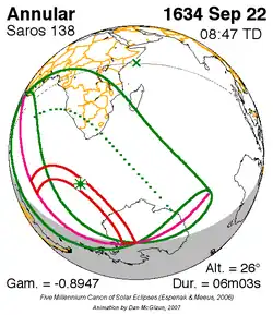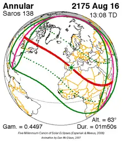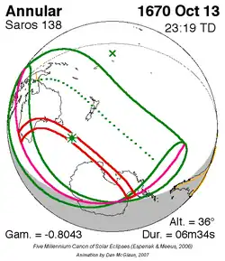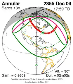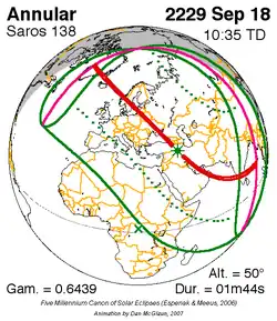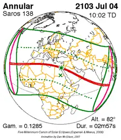 Saros 138 zonsverduisteringserie als bewegend beeld