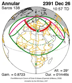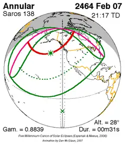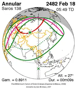 Kortste ringvormige zonsverduistering 18 feb. 2482 0m 9s -
