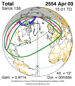 Langste totale zonsverduistering 3 apr. 2554 0m 56s -