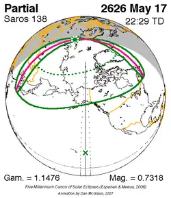 Grootste gedeeltelijke zonsverduistering 13 apr. 2572 - 0,99022
