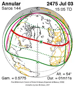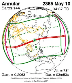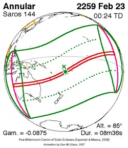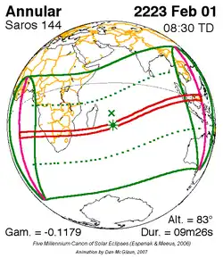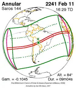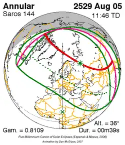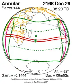 Langste ringvormige zonsverduistering 29 dec. 2168 9m 52s -
