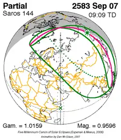 Grootste gedeeltelijke zonsverduistering 7 sep. 2583 - 0,95964