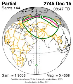 Saros 144 zonsverduisteringserie als bewegend beeld