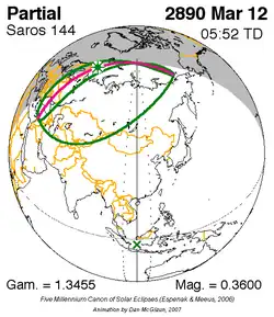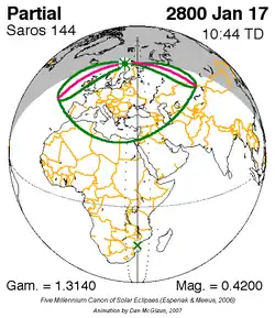 Saros 144 is een reeks zonsverduisteringen in de periode 11 april 1736 t/m 5 mei 2980 . Deze serie duurt 1244 jaar en 24 dagen, bevat 70 verduisteringen en valt samen met de Inexserienrs 25 t/m 94.