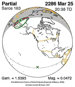 Saros 163 is een reeks zonsverduisteringen in de periode 25 maart 2286 t/m 13 mei 3566 . Deze serie duurt 1280 jaar en 49 dagen, bevat 72 verduisteringen en valt samen met de Inexserienrs 25 t/m 96.