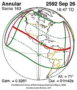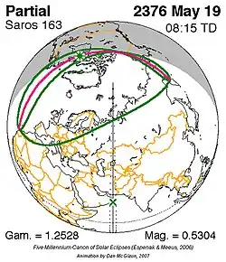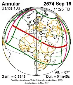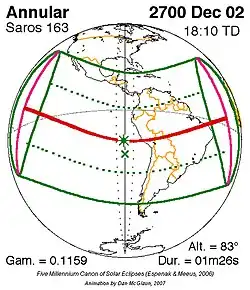 Saros 163 zonsverduisteringserie als bewegend beeld