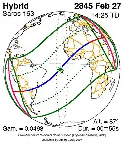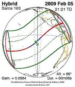 Kortste hybride zonsverduistering 5 feb. 2809 0m 6s -