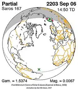 Kleinste gedeeltelijke zonsverduistering 6 sep. 2203 - 0,00673