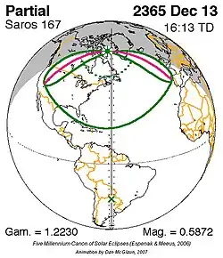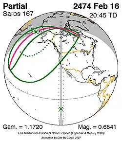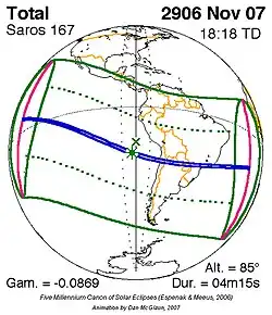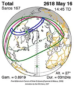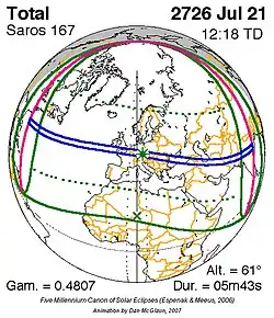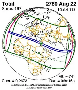 Saros 167 zonsverduisteringserie als bewegend beeld