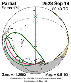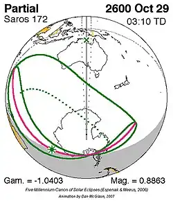 Saros 172 zonsverduisteringserie als bewegend beeld