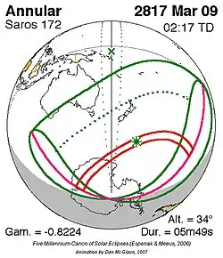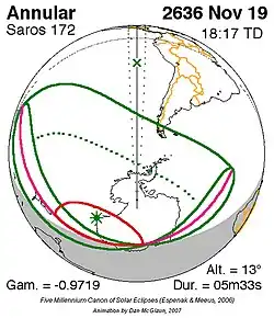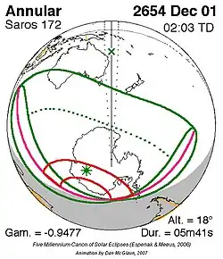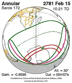 Langste ringvormige zonsverduistering 24 jan. 2745 5m 58s -
