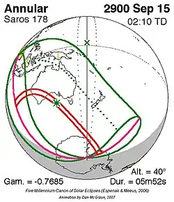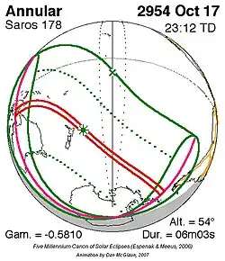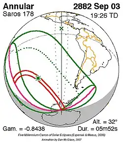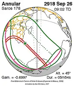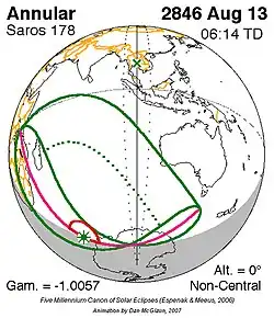 Langste ringvormige zonsverduistering 2 jan. 3081 6m 49s -