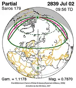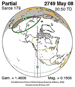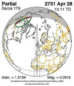 Kleinste gedeeltelijke zonsverduistering 28 apr. 2731 - 0,05177