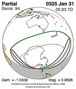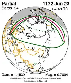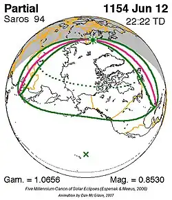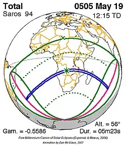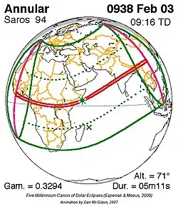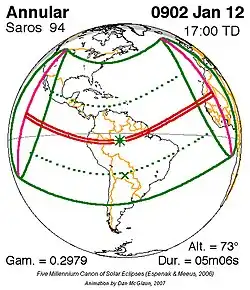 Saros 94 zonsverduisteringserie als bewegend beeld