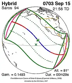 Kortste hybride zonsverduistering 15 september 703 0m 29s -