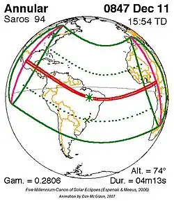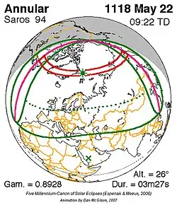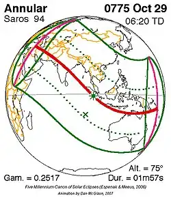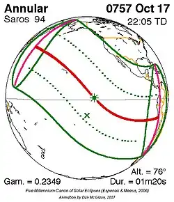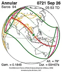 Kortste ringvormige zonsverduistering 26 september 721 0m 7s -