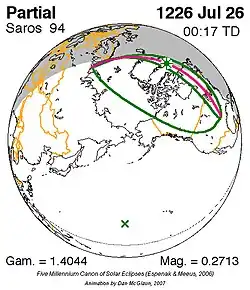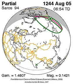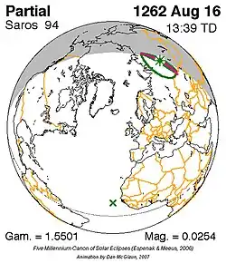 Kleinste gedeeltelijke zonsverduistering 16 augustus 1262 - 0,02557