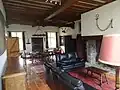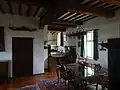 - een zeer brede open haard met kijkgat naar de vroegere stallen; er was zelfs plaats voor een stoof in de haard om het voedsel voor de dieren op te warmen, met een gat in de muur om het rechtstreeks naar de stallen door te schuiven;