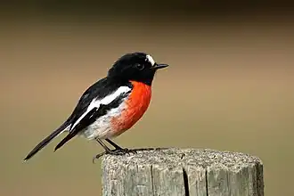 De scharlaken vliegenvanger (Petroica boodang) is een zangvogel uit de familie Petroicidae (Australische vliegenvangers).