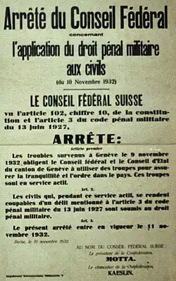 - ↑ (fr) Pas de réhabilitation des condamnés antifascistes genevois de 1932, RTS Info, 10 mei 2019.