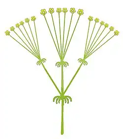 De schutbladen aan de voet van de hoofdas en van de zijassen van een scherm of andere vertakte bloeiwijzen worden bracteeën genoemd.